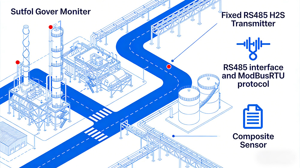Pour les usines pétrochimiques où coexistent des gaz toxiques et inflammables, une stratégie de « combinaison point-surface » est recommandée : installer des transmetteurs fixes de sulfure d'hydrogène RS485 près des points de fuite potentiels de H₂S (équipés d'une interface RS485 et du protocole ModBus RTU, ils prennent en charge la gestion centralisée des données et permettent une surveillance à distance pratique), et déployer des capteurs composites dans les zones de canaux.