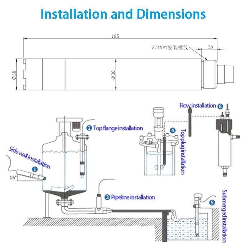 Ce capteur de conductivité électrique est largement utilisé pour garantir la sécurité et la qualité dans diverses applications, notamment l'aquaculture, la surveillance marine, le traitement de l'eau potable, l'exploitation des piscines, la surveillance des rivières/ruisseaux, le traitement des eaux usées, les parcs industriels chimiques et l'irrigation des terres agricoles.