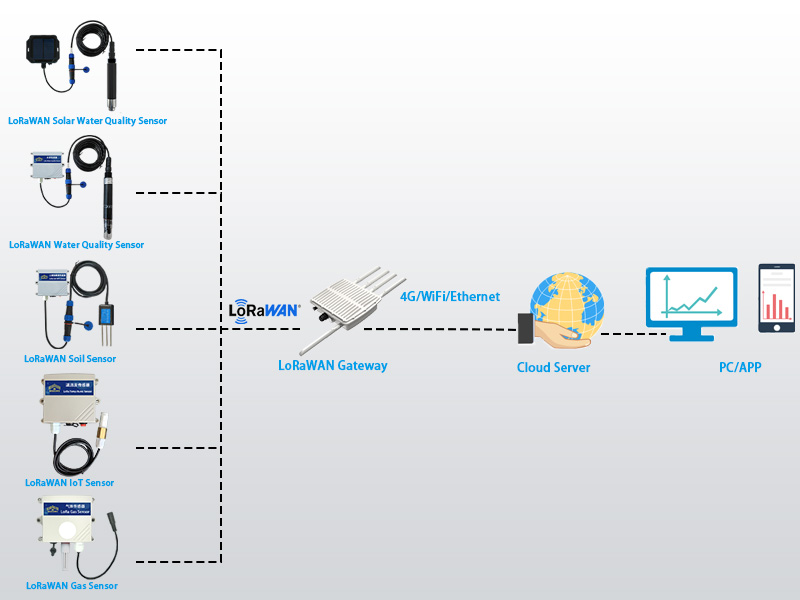 Le capteur de conductivité électrique LoRaWAN est un capteur sans fil conçu pour surveiller la conductivité électrique (CE) de l'eau. Dispositif de surveillance en ligne professionnel, il permet un suivi en temps réel et à long terme des valeurs de CE. Il est largement utilisé dans le traitement des eaux industrielles, l'agriculture, l'aquaculture et d'autres applications où la CE reflète directement la concentration de la solution, le niveau de nutriments et la salinité, contribuant ainsi à garantir une production stable et un environnement aquatique sain.