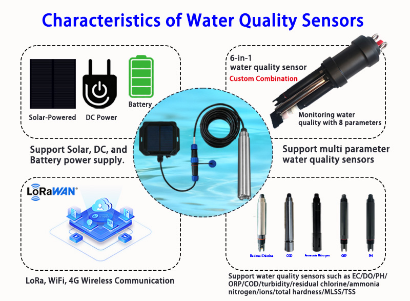 Ce capteur de chlorophylle solaire est idéal pour la surveillance de la qualité de l'eau sur site. Autonome grâce à l'énergie solaire, il peut être déployé de manière flexible dans les zones dépourvues d'électricité, comme les lacs, les réservoirs et les sources d'eau potable, permettant une surveillance continue de la concentration en chlorophylle 24h/24 et 7j/7. Son principal atout réside dans la capacité à alerter en cas de prolifération d'algues, aidant ainsi efficacement les services de protection de l'environnement à contrôler à distance la dynamique de la qualité de l'eau et à garantir la sécurité du milieu aquatique et la santé publique.