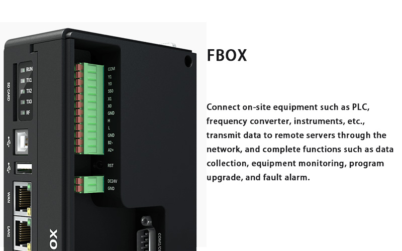 FBOX est un terminal d'acquisition de données intelligent de terrain professionnel conçu spécifiquement pour la plateforme de l'Internet industriel des objets (IIoT).