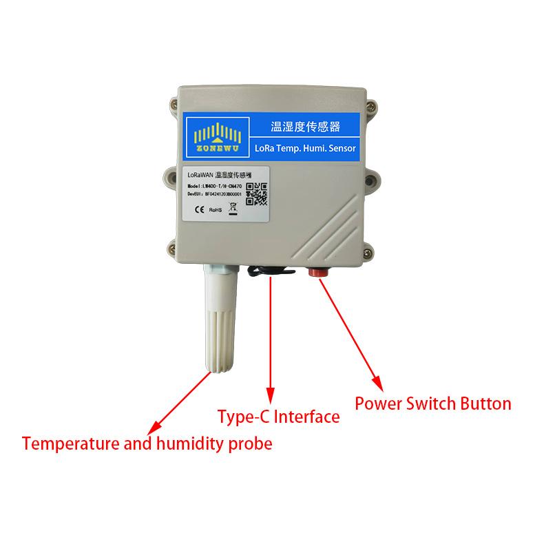 Capteur de température et d'humidité sans fil à faible consommation d'énergie, et basé sur la communication LoRaWAN, une forte compatibilité, une large couverture et avec plusieurs sondes au choix.
