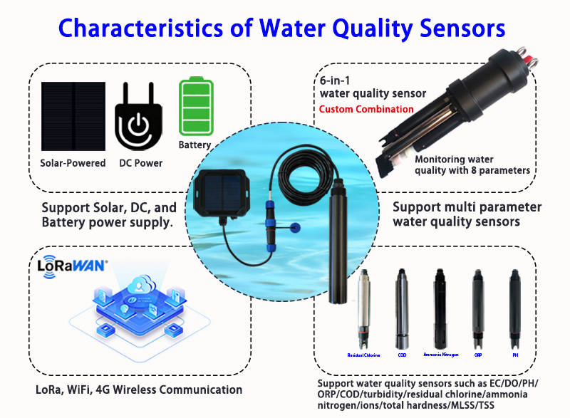 Grâce à l'énergie solaire et à la technologie de transmission sans fil, il s'affranchit totalement des contraintes du câblage traditionnel, permettant ainsi une autonomie énergétique et une interconnexion de données à distance. Cette fonctionnalité en fait une solution idéale pour la surveillance à long terme et sans intervention humaine de la qualité de l'eau en milieu extérieur, comme les rivières, les lacs et les réservoirs.