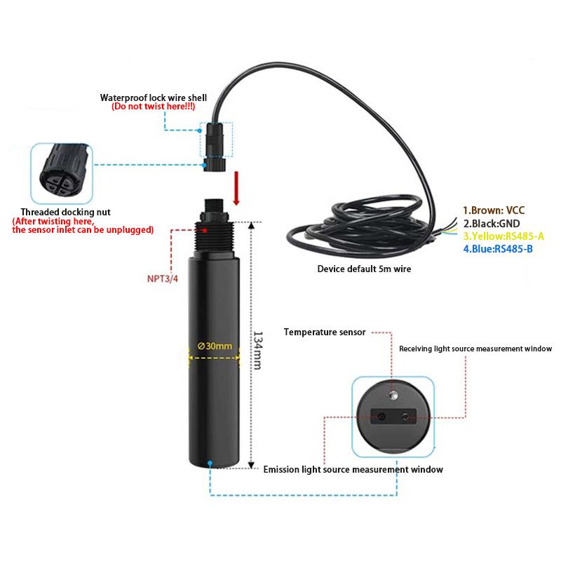 Utilise la technologie de détection par fluorescence : émet une lumière d’excitation à longueur d’onde spécifique pour stimuler la phycocyanine (propre aux cyanobactéries) et induire une fluorescence caractéristique. Quantifie l’intensité de fluorescence pour calculer avec précision la concentration de cyanobactéries et les différencier efficacement des autres algues. Un algorithme anti-interférences intégré et une fonction de compensation de température réduisent les erreurs de données dues à la turbidité de l’eau, à la lumière ambiante et aux fluctuations de température. Communication : la technologie LoRaWAN (réseau étendu basse consommation) assure une transmission sans fil longue portée (plusieurs kilomètres) pour les environnements extérieurs non raccordés au réseau, réduisant ainsi les coûts de déploiement. Protection : indice de protection IP68, fabriqué à partir de matériaux résistants à la corrosion pour une immersion prolongée. Certains modèles sont équipés de brosses autonettoyantes pour empêcher l’adhérence des algues.